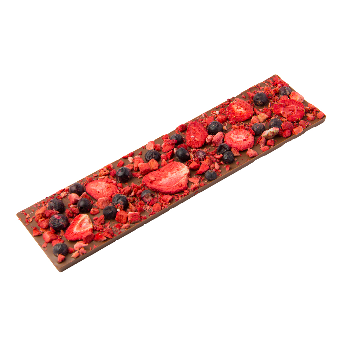 Tejcsokoládé liofilizált eperrel és liofilizált fekete ribizlivel