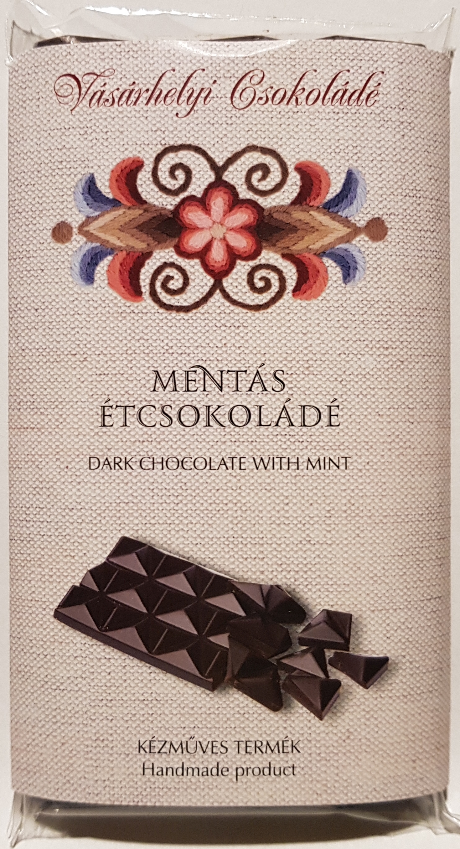 Összetevők: Kakaómassza, kakaóvaj, cukor, emulgeálószer: szójalecitin, természetes vanília, kakaó szárazanyag tartalom legalább 73%, menta por, mentaolaj.
